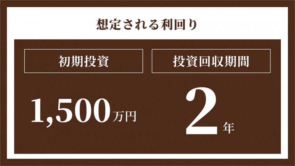 場所や店舗によって変動しますが、初期投資金額は加盟金などを含めて1500万円〜、投資回収期間は最短2年〜と設計されています。