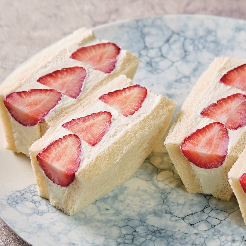 毎朝お店で焼き上げるサンドイッチに使用する食パンは、国産小麦の湯ごね生地を使うことで、しっとりとした食感にし、フルーツサンドに合わせ、甘さは控えめに仕上げています。店内ではお好みのサンドイッチを二切れずつ「ハーフ&ハーフ」でお選びいただけます。「フルーツミックスサンド」と「名物 かにサラダサンド」など、ご自由に組み合わせてお楽しみください。