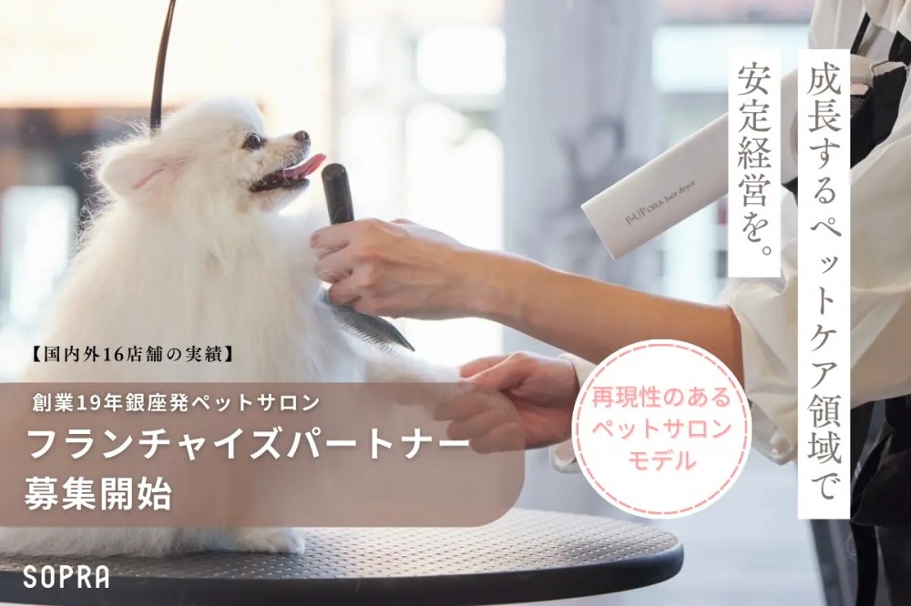 ソプラ銀座株式会社(本社:東京都中央区銀座)は、創業19年・国内外16店舗を展開するペットサロンブランド「SOPRA」において、教育事業「SOPRA Academy」と連携し、未経験からサロンオーナーを目指せるフランチャイズモデルの募集を開始しました。