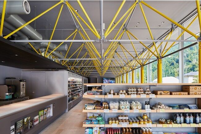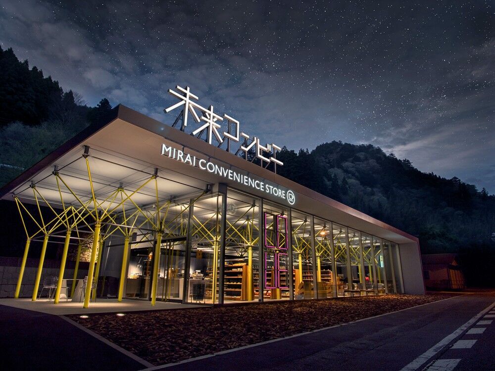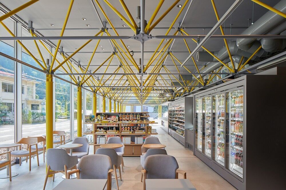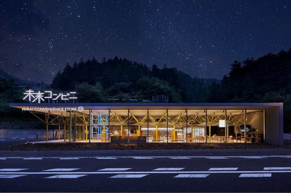 徳島県那賀町木頭地区。人口1,086人(2020年4月現在)の旧・木頭村と言われるこのエリアは、生活必需品購入のため最寄りのコンビニまで車で約1時間かかってしまう場所でした。「未来コンビニ」は、株式会社Kito Design Holdings が過疎化と高齢化が進むこの地の人々の利便性向上のために企画し、2020年4月に待望のオープンを迎えたコンビニです。