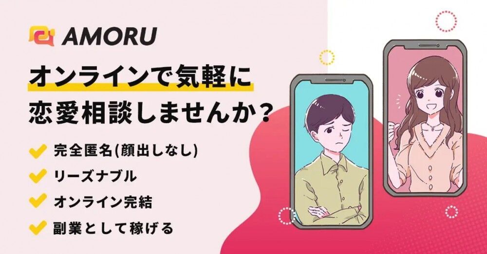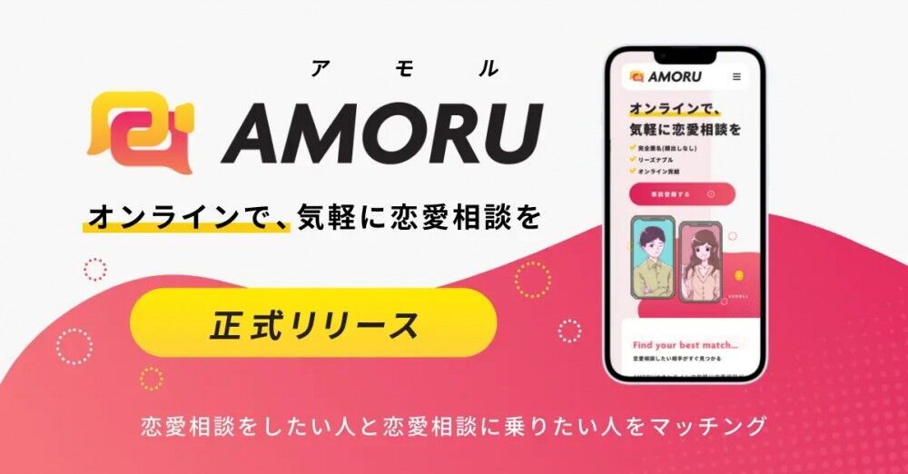 恋愛相談をしたい人と恋愛相談に乗りたい人をマッチング オンライン恋愛相談「AMORU(アモル)」が正式リリース
