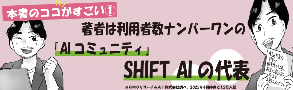 「日本をAI先進国に」を掲げAIのビジネス活用を学べる利用者数No.1※のAI大学「SHIFT AI」を運営する株式会社SHIFT AI(東京都渋谷区)代表取締役 木内翔大は、『AIのド素人ですが、10年後も仕事とお金に困らない方法を教えて下さい! 最悪の未来でも自分だけが助かる本』を株式会社KADOKAWAより2025年5月21日に発売いたします。昨今、AI技術の急速な進化と普及により、私たちの仕事や生活は大きな変革の時を迎えています。本書は、AIに関する専門知識がない方でも、来るべきAI時代を生き抜き、仕事とお金に困らないための具体的な方法と考え方を提示する一冊です。