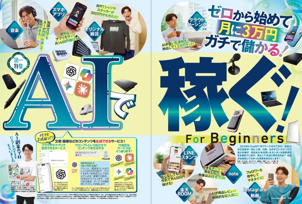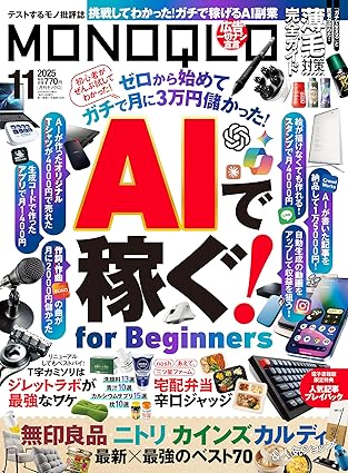 MONOQLO11月号は、AIで稼ぐ! For Beginners/人気ショップ The Best70/