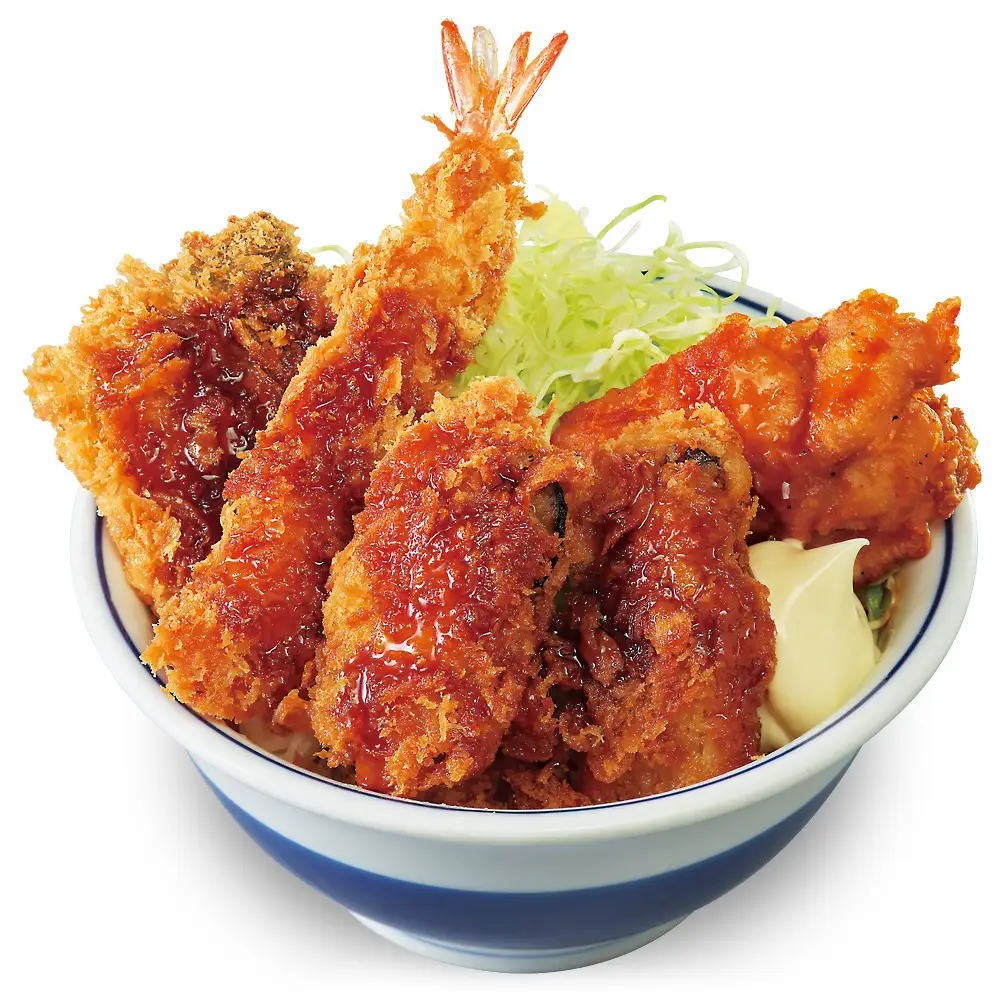 また、かつやで食べるなら丼派!という方のために、ご飯の上に揚げ物を豪快に盛り付けた「秋の海鮮フライ丼」もご用意しております。牡蠣醤油を使用した甘辛い特製タレをたっぷりかけた、ご飯が進む一杯です。