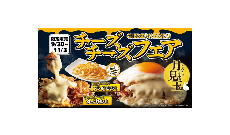 株式会社物語コーポレーション(本社:愛知県豊橋市/代表取締役社長:加藤 央之)が全国で20店舗を展開する『お好み焼本舗』は、2025年9月30日(火)から2025年11月3日(月)の期間限定で、「チーズチーズフェア」を開始します。