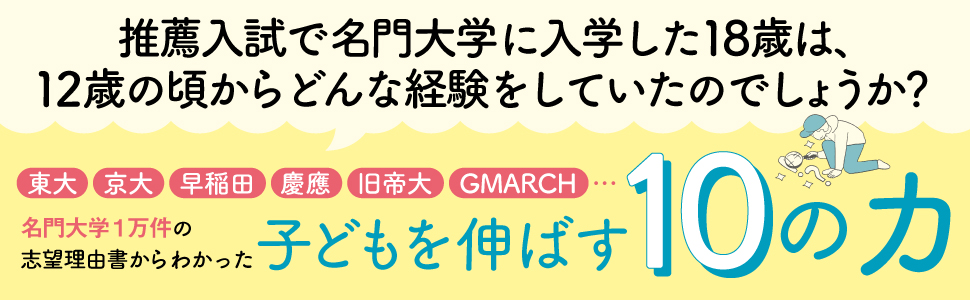 そして、推薦で名門大学へ進んだ子どもたちは、例外なく、この10の力を12歳ごろから育てていたのです。