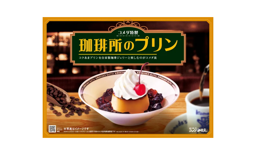 全国にフルサービス型の喫茶店を展開する株式会社コメダ[本社:愛知県 代表取締役社長:甘利 祐一 グループ店舗数:1,140店舗(2025年12月末時点)]は、全国のコメダ珈琲店で2026年1月15日(木)から「珈琲所のプリン」をレギュラーメニューとして通年販売を開始します。