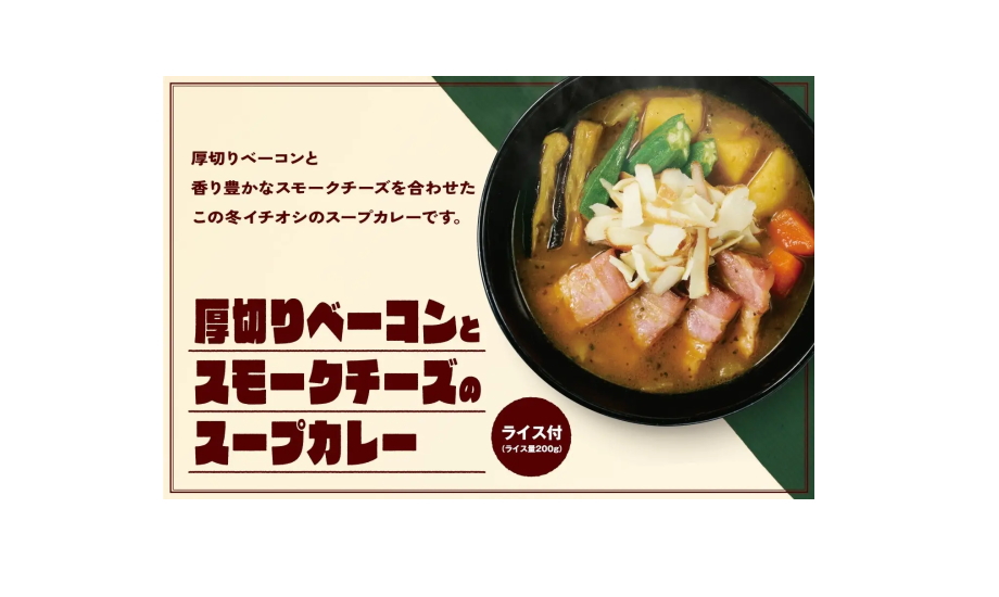 - 後入れチーズで味変を楽しむ 「厚切りベーコンとスモークチーズのスープカレー」を2月1日より販売