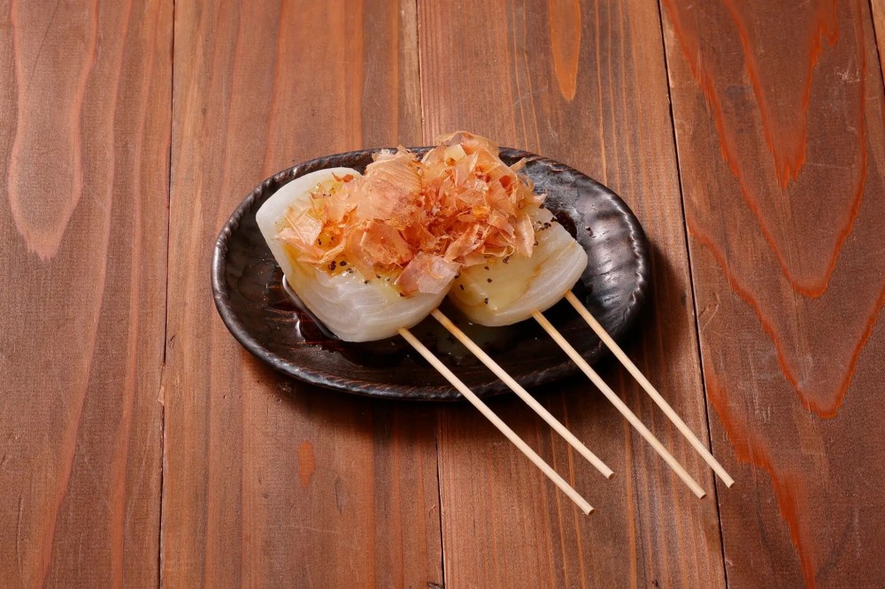 創業初期に常連のお客様からリクエストされた玉ねぎ串。令和版の玉ねぎ串は、調理にひと手間かけることで、とろっとした玉ねぎの食感をお楽しみ頂けるよう仕上げました。かつおぶしと、醤油バターソースが、玉ねぎの甘味を引き立てます。