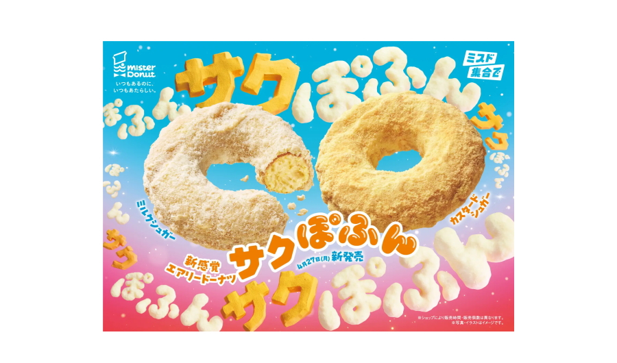 株式会社ダスキン(本社:大阪府吹田市、社長: 大久保 裕行)が゙運営するミスタードーナツは、4月27日(月)から、『サクぽふん』全2種を期間限定で発売します。