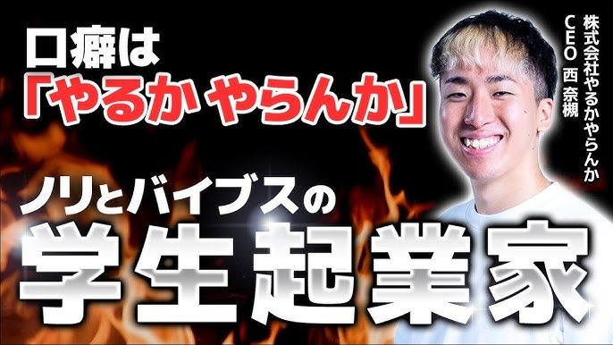 その名は、西奈槻。のちに 株式会社やるかやらんか を創業し、「やるか、やらんか。」という強烈な哲学を世に放つことになる若き起業家である。