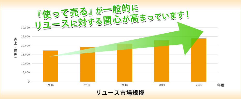 多くの個人売買サイトの出現にも見て取れるように、中古売買に対する抵抗感も少なくなり、新たなリユースユーザーはどんどん生まれています。さらに、ゴルフクラブについては高額取引であるため、売って買うことにより差額の支払いだけで済みますので出費を抑えた取引が可能となり、中古ゴルフショップの利用者は年々増加傾向にあるのです。また、平均販売時粗利43%と、安定した利益確保ができる商品構成も魅力の一つです。
