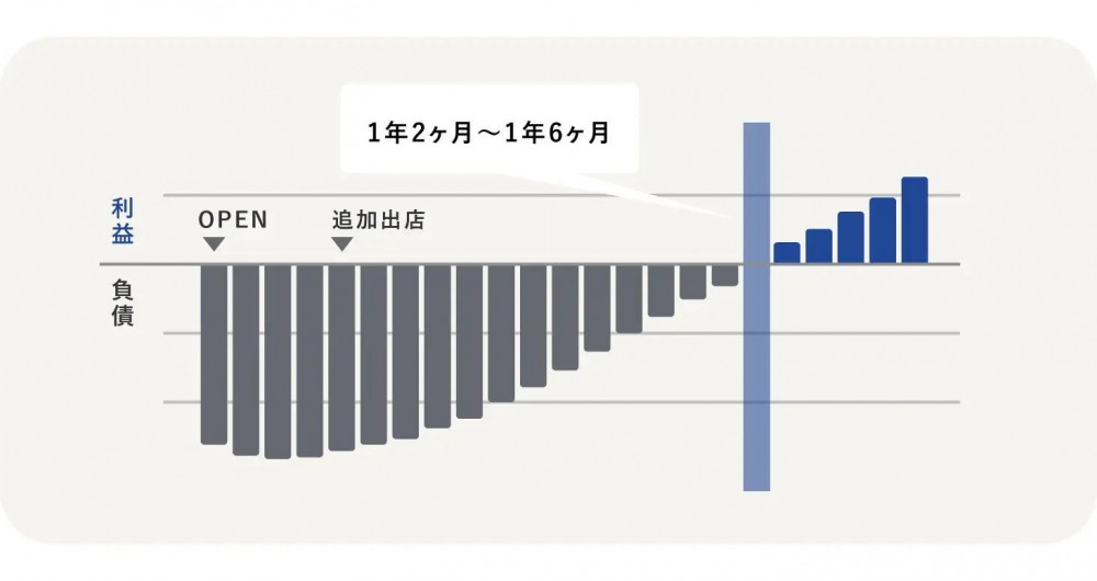 また、オープンから5ヶ月後には追加出店が可能となるため、投資回収期間に関するシミュレーションもご紹介いたします。
