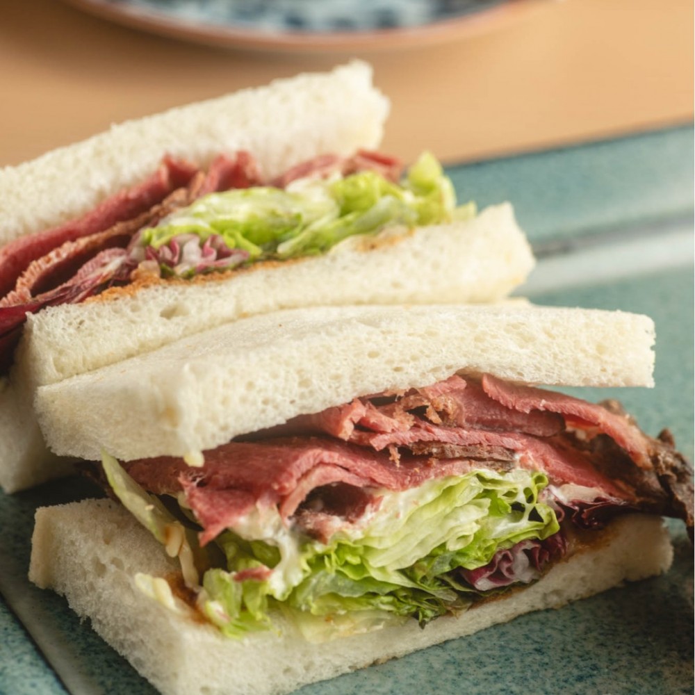 毎朝お店で焼き上げるサンドイッチに使用する食パンは、国産小麦の湯ごね生地を使うことで、しっとりとした食感にし、フルーツサンドに合わせ、甘さは控えめに仕上げています。店内ではお好みのサンドイッチを二切れずつ「ハーフ&ハーフ」でお選びいただけます。「フルーツミックスサンド」と「名物 かにサラダサンド」など、ご自由に組み合わせてお楽しみください。