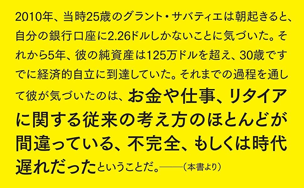 著者グラント・サバティエは、貯金わずか2.26ドルの状態から、