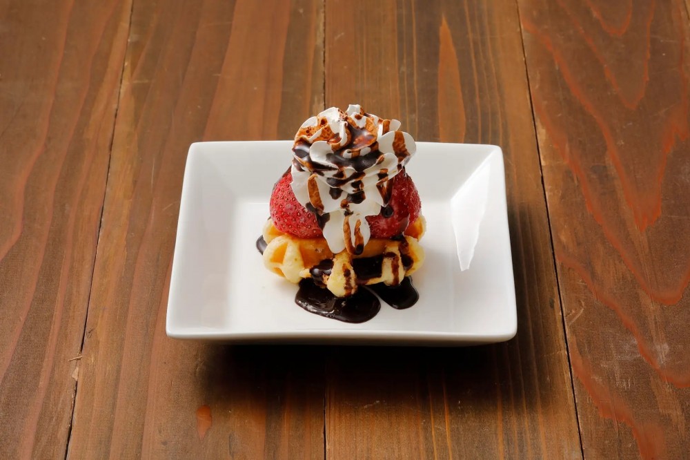 鳥貴族に初めて登場したデザートメニューは「いちごアイス」でした。令和版は、ワッフルにいちごアイスを乗せ、ホイップとチョコソースで盛り付けた「いちごアイスパフェ」として復刻しました。
