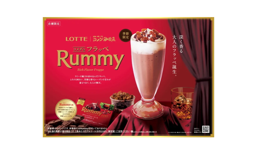 全国にフルサービス型の喫茶店を展開する株式会社コメダ[本社:愛知県 代表取締役社長:甘利祐一 グループ店舗数:1,130店舗(2025年8月末時点)]は、株式会社ロッテ[本社:東京都 代表取締役社長執行役員:中島英樹]の販売するチョコレート「ラミー」とコラボレーションした「コメダのフラッペ Rummy」を、コメダ珈琲店の一部店舗にて、2025年10月7日(火)より季節限定で販売いたします。