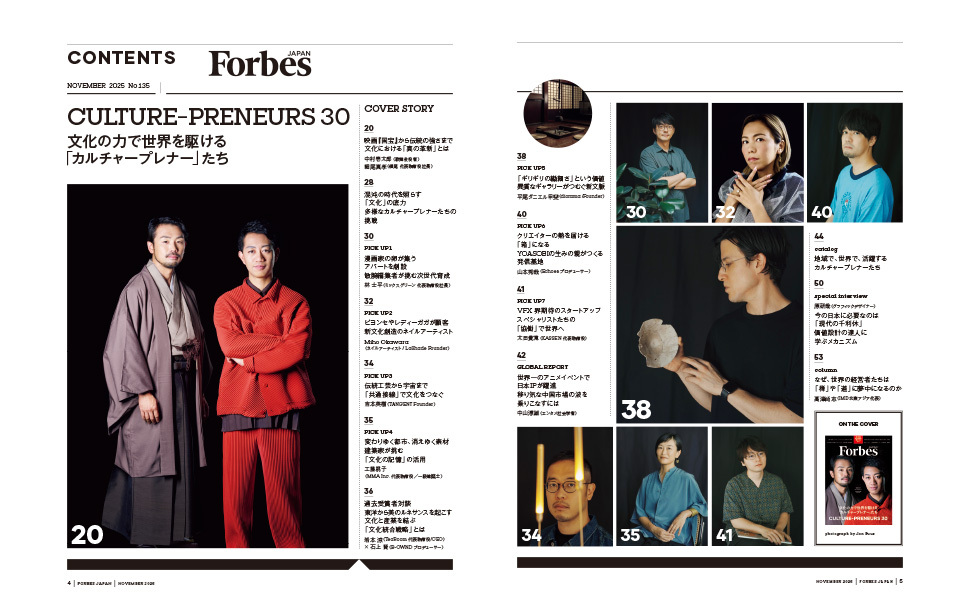 ForbesJAPAN 「文化の力で世界を駆けるカルチャープレナーたち」2025年11月号