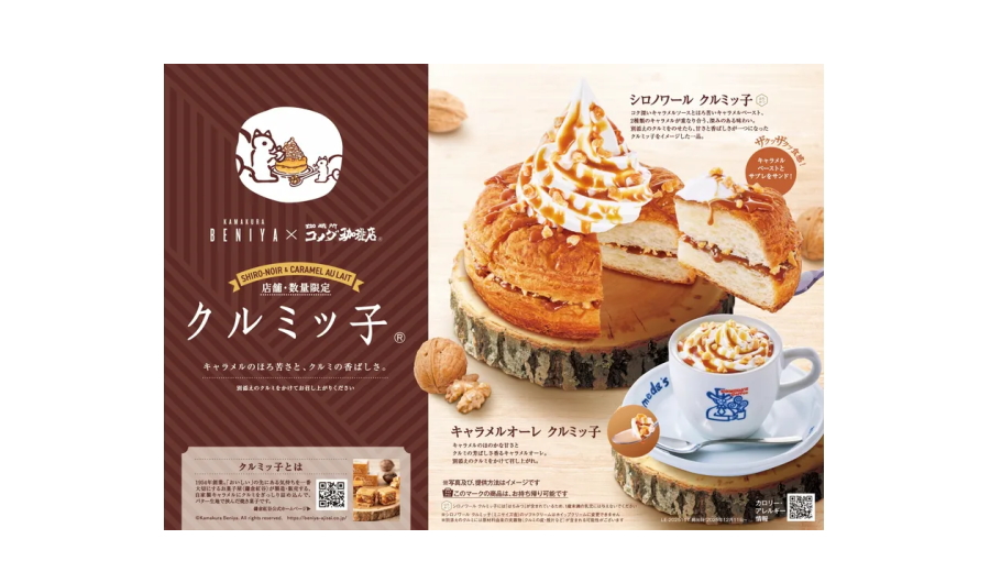 全国にフルサービス型の喫茶店を展開する株式会社コメダ [本社:愛知県 代表取締役社長:甘利 祐一 グループ店舗数:1,137店舗(2025年11月末時点)]は、株式会社鎌倉紅谷[本社:神奈川県 代表取締役:有井 宏太郎]の看板商品、「クルミッ子」とコラボレーションした「シロノワール クルミッ子」と「キャラメルオーレ クルミッ子」を、2025年12月11日(木)より、東京都、神奈川県、千葉県、埼玉県のコメダ珈琲店で、数量限定で販売いたします。