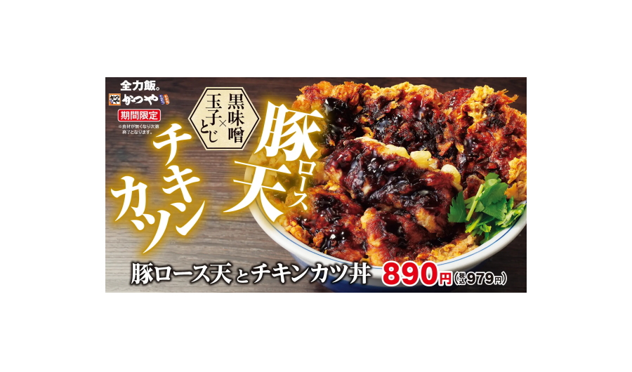 濃厚黒味噌ダレが絡む「豚ロース天とチキンカツ丼」かつやに新登場!
