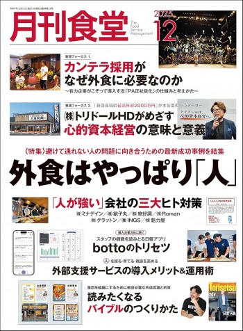 2月号では、実績あるマルチFCジー8社に「加盟を決める条件」をテーマに取材した巻頭企画をはじめ、(株)物語コーポレーション・元取締役常務の橋康忠氏によるFCザーへの提言を収録。それに加え、後半は抜群の売上げ実績を誇る新顔FCのヒットモデルをとりあげるとともに、進出事例が増えているASEAN3カ国におけるFCビジネスの最新動向をレポートします。