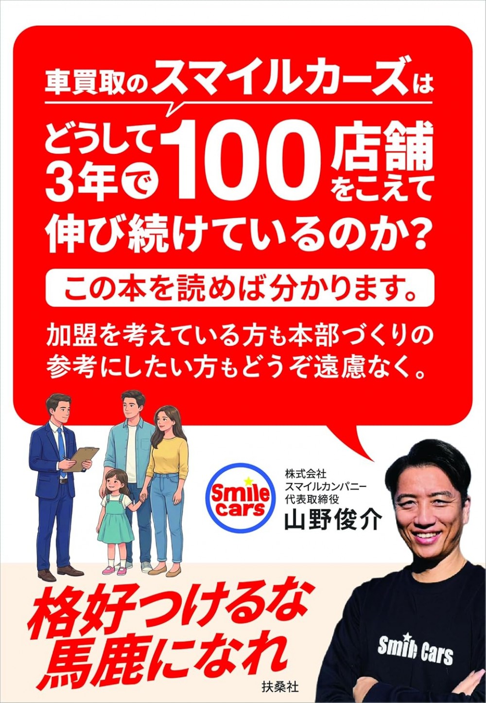 車買取のスマイルカーズはどうして3年で100店舗をこえて伸び続けているのか?この本を読めば分かります。加盟を考えている方も本部づくりの参考にしたい方もどうぞ遠慮なく。
