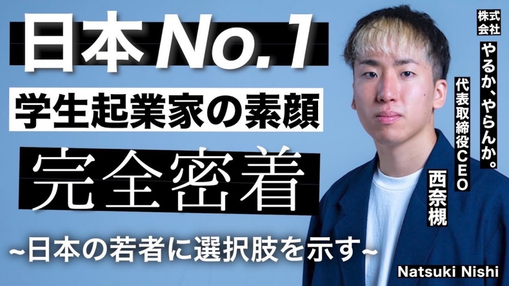 その名は、西奈槻。のちに 株式会社やるかやらんか を創業し、「やるか、やらんか。」という強烈な哲学を世に放つことになる若き起業家である。