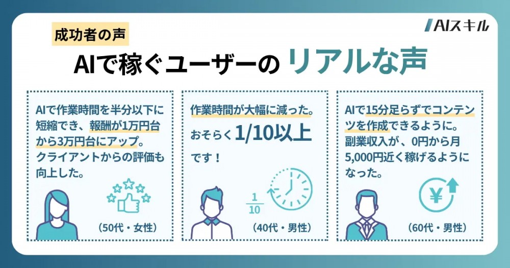 【成功者の声】「作業時間が1/10に」「クライアントからの評価も向上」AIで稼ぐユーザーのリアルな仕事術