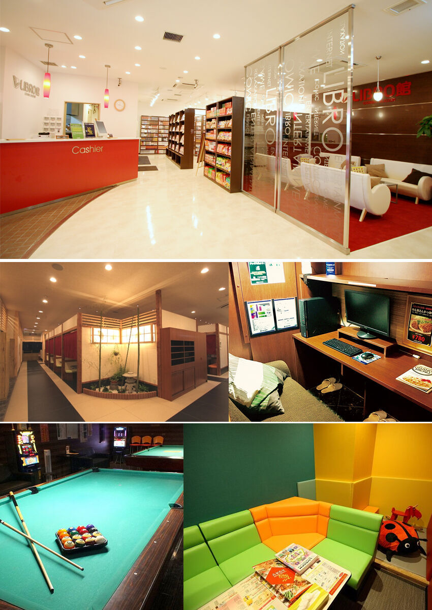 - オシャレで安らぎを与えてくれる空間をベースとしていまや生活に不可欠なインターネットやコミック、新聞、雑誌等を取り揃え、TV、DVD、ゲーム、マッサージチェア、ビリヤード、ダーツなどの情報機器やアミューズメント的要素のアイテムなど、様々なコンテンツを取り入れて誕生した全く新しいスタイル複合カフェ、それがコミック・バスターです。
